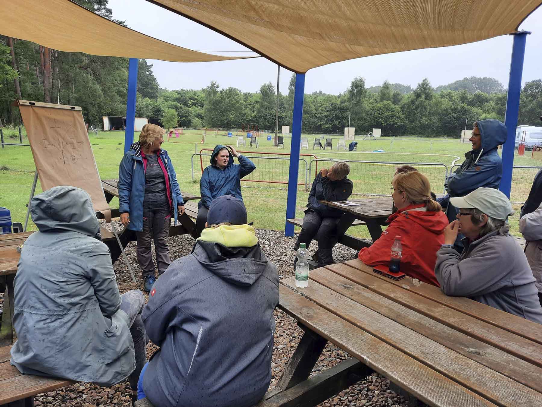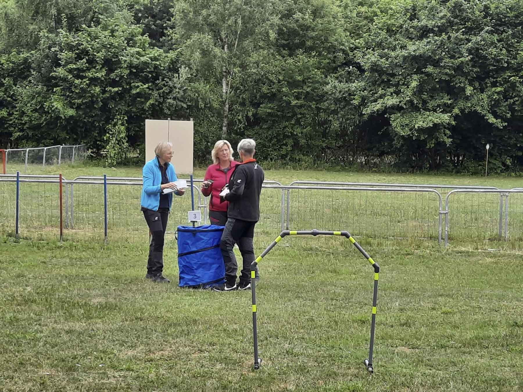 Anfang Juli dieses Jahres, vom 01.-02.07.23, führte die OG Hundefreunde Greffen nun das 2. Seminar zum Thema Hoopers durch. Dazu wurde die Richterin Sandra Knirps (aus der OG Kirchlengern-Nord) eingeladen, welche die Hoopers-Übungsleiter-Anwärter, Alexandra Rhode-Steinkamp (aus der OG Detmold-Nord) und Ulrike Loermann (aus der OG Hundefreunde Greffen) schulte. Inhalt der Veranstaltung war das Einüben der Abstände, Reihenfolge, Laufrichtungen und Wendungen. Dabei wurde nicht nur die Theorie vermittelt, sondern auch die praktische Durchführung war gefragt. 12 Teilnehmer*Innen setzten erneut mit ihren Vierbeinern in kleinen, wechselnden Gruppen das theoretisch erlernte Wissen in die Praxis um.